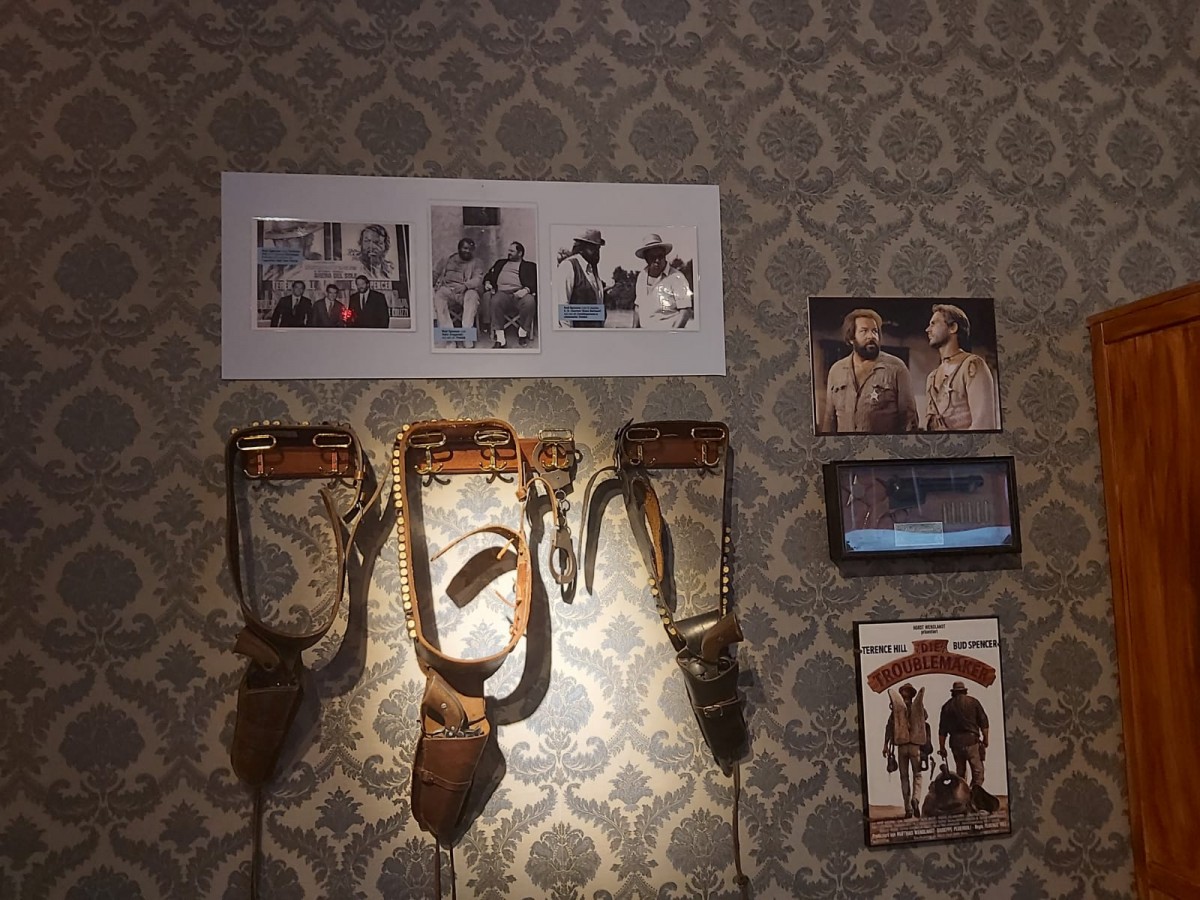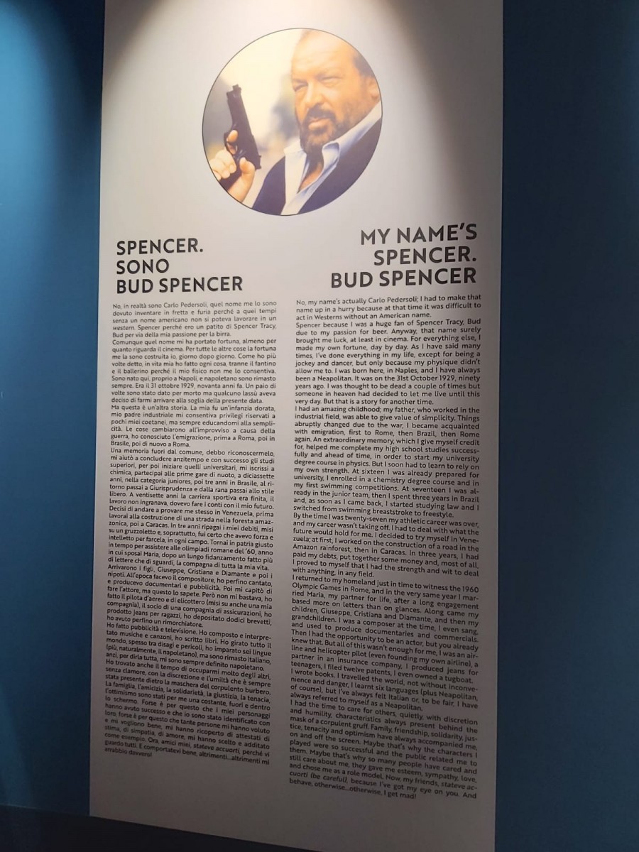 I titoli di credito originali sono esposti in una teca nella Sala Dorica del Palazzo Reale di Napoli dove, fino all’8 dicembre prossimo, è possibile partecipare alla prima Mostra multimediale su Bud Spencer, scomparso (a 86 anni) il 27 giugno 2016 ma ancora vivo nei ricordi di familiari, amici, colleghi e, soprattutto, ammiratori disposti ad affrontare centinaia di chilometri per una foto con uno dei suoi cimeli.