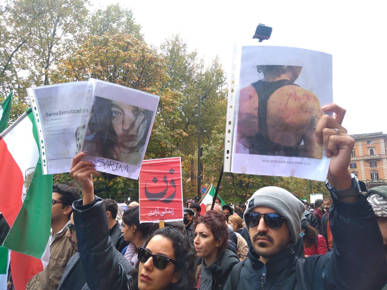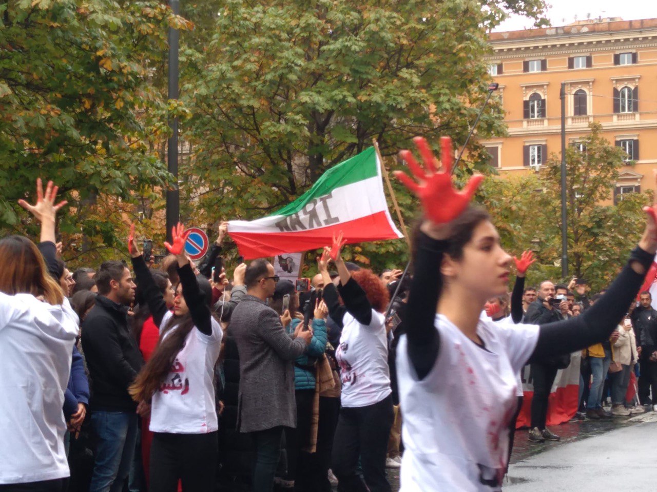 L’odore del petrolio non copre l’odore del sangue! Giornalisti unitevi a noi e sosteneteci contro un regime guerrafondaio, noi riusciremo a liberarci dal regime teocratico degli ayatollah, gridate tutti insieme affinché anche in Iran i nostri connazionali ci sentano e capiscano che siamo con loro.” Il momento più toccante della manifestazione, quello in cui molti si sono sciolti in lacrime è stato quando sono state diffuse le ultime voci in vita dei giovani iraniani uccisi, come quella di Navid Afkari che diceva, prima di essere impiccato “il vostro silenzio è disumano”, o come la voce di Nika Shahkarami, in uno dei momenti di allegria, quale i suoi 16 anni