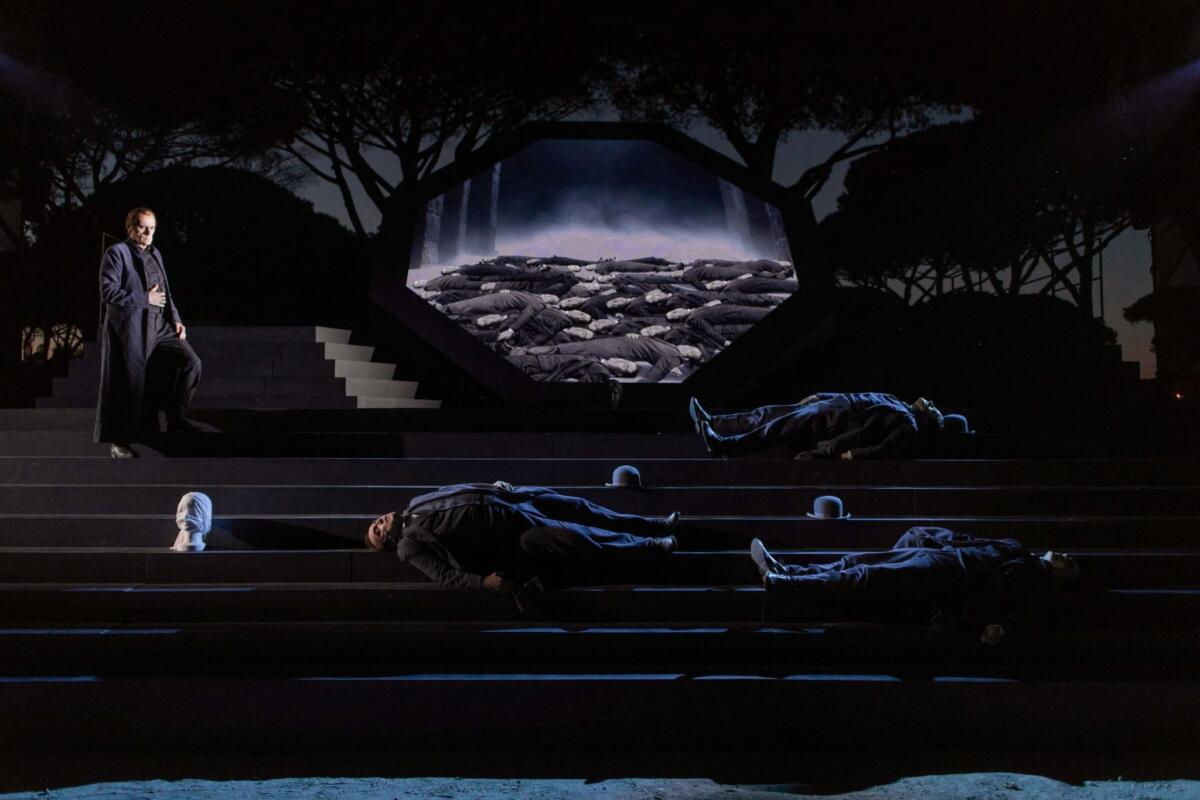 Per comprendere nel profondo l’opera di Sofocle occorre ricordare che, sempre secondo Aristotele, questa tragedia è esempio per eccellenza della catarsi, ossia del processo di immedesimazione nei dolori del protagonista per apprendere una lezione e purificarsi emotivamente e spiritualmente. Perché il teatro possa espletare il suo potere catartico è necessario, dunque, che il pubblico abbia la possibilità, superando tempo e latitudine, di riconoscersi nei personaggi, grazie al valore del testo e alla sapienza della regia. Luca De Fusco, pur conferendo una grande caratterizzazione autoriale alla sua regia è riuscito in un compito arduo, ma imprescindibile: rispettare il testo e l’impianto tragico del grande teatro greco. Solo così parole capitali di Sofocle, quali “sei mortale, non chiamare felice nessuno” hanno potuto innalzarsi potenti sui resti millenari di Ostia antica e scuotere con altrettanta forza il cuore degli spettatori. Se la traduzione di Gianni Garrera ha offerto un testo vibrante e potente, la messa in scena di De Fusco ha ricomposto la frattura esistente tra regista e testo, riuscendo nel compito più difficile: conferire identità e mettersi al servizio dell’opera. “Rivendico da tempo- dice Luca De Fusco – un ridimensionamento della figura del regista che da autore deve, a mio modesto avviso, tornare ad essere interprete. Ma se è giusto tornare al testo è anche vero che non esiste una tradizione interpretativa autentica della tragedia greca. A quel che sappiamo i testi che ci sono rimasti sono vagamente assimilabili a libretti d’opera senza musica. Quando si fa la regia di un testo di drammaturgia antica si parte dall’anno zero. Inoltre, l’enorme vastità dei temi di questo capolavoro dell’umanità comporta necessariamente dei tradimenti. Uscendo da una pandemia si può passare dal tema sociale della peste a quello girardiano del capro espiatorio. Io ho scelto la strada della metafora della conoscenza”.