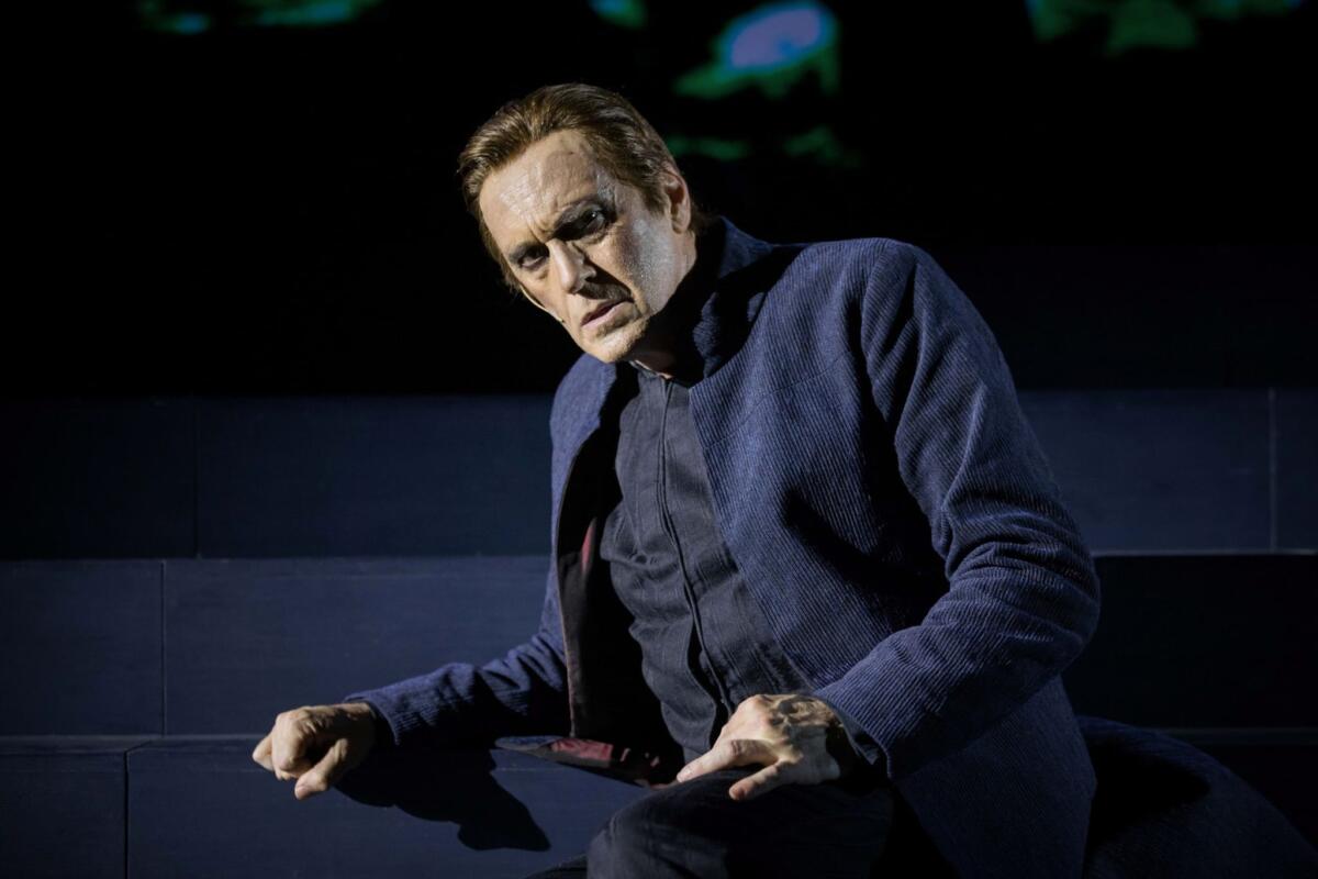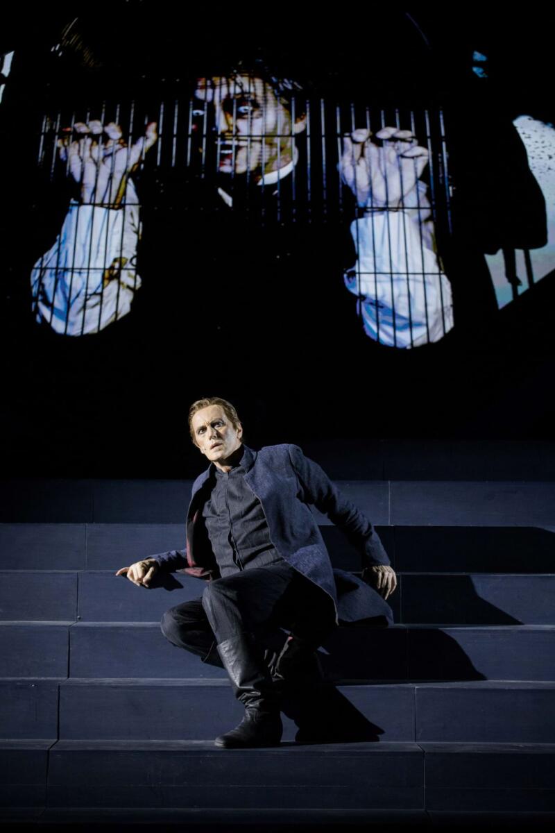 Altro ottimo risultato di coesione narrativa e tecnologia al servizio dell’attore, è stata la scenografia dominata da un grande schermo su cui compare il vecchio indovino Tiresia, che si fa inconscio del protagonista, il quale campeggia al centro della scena come una sorprendente astronave atterrata. Le proiezioni diventano così realtà aumentata che esalta il valore degli attori, senza alterarli, né sostituirli, mostrano un eccellente uso della tecnica al servizio dell’arte e non viceversa.