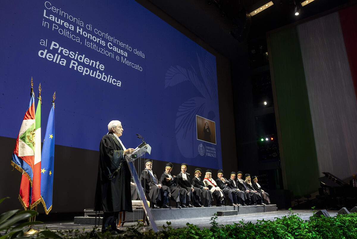 La contemporaneità sta imponendo sfide rivoluzionarie nell’ordine internazionale e in quello economico, con evidenti riflessi sugli ambiti istituzionali”. Con queste parole il presidente della Repubblica, Sergio Mattarella, ha aperto la sua lectio doctoralis all’Università di Firenze, dopo aver ricevuto la laurea magistrale honoris causa in Politica, Istituzioni e Mercato dalla Scuola di Scienze Politiche “Cesare Alfieri”.