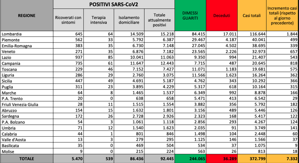 Coronavirus, nuova impennata, 7.332 positivi in 24 ore